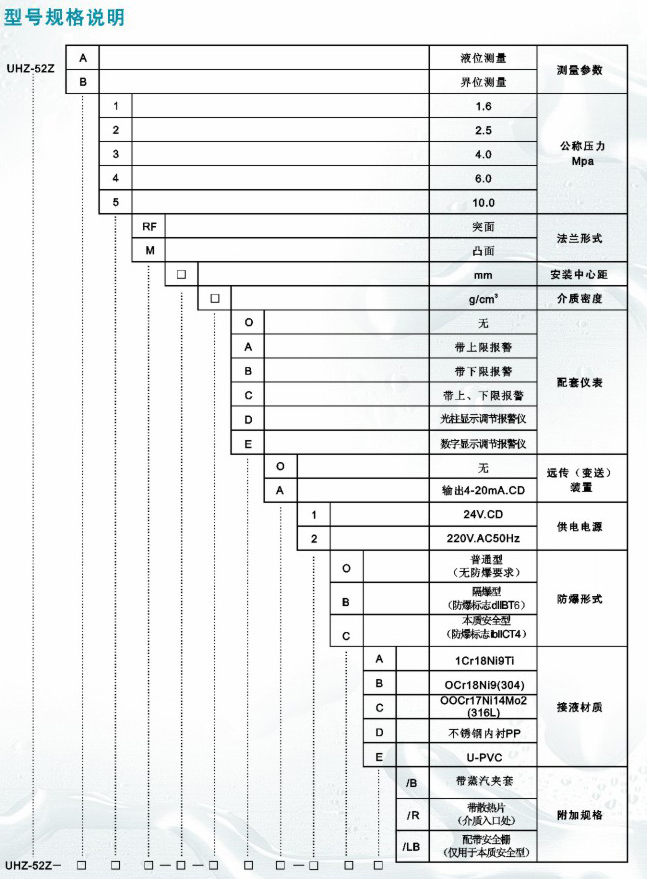 UH-52Z系列側(cè)裝式磁翻柱液位計,是本廠引進(jìn)、吸收國外同類產(chǎn)品、并加以吸收、消化、提高、按原化學(xué)工業(yè)部頒布的磁性液位計標(biāo)準(zhǔn)HG/T21584-95研制生產(chǎn)的產(chǎn)品。可用于塔、罐、槽、球形容器和鍋爐等設(shè)備的介質(zhì)液位檢測。該系列磁性液位計可以做到高密封、防泄漏適應(yīng)于高壓、高溫、腐蝕性介質(zhì)的液位測量,使用可靠,安全性好,它彌補(bǔ)了玻璃板(管)液位計指示不清晰,易破碎的不足,不受高、低溫度劇變的影響,不需多組液位計的組合。全過程測量無盲區(qū),顯示醒目,讀數(shù)直觀,測量范圍大,特別是現(xiàn)場指示部分,由于不與液體介質(zhì)直接接觸,所以對高溫、高壓高沾度、有毒、有害、強(qiáng)腐蝕性介質(zhì),更顯其不錯的性能。因此,它比傳統(tǒng)的玻璃管,板式液位計具有更高的可靠性、安全性、先時性、實(shí)用性。